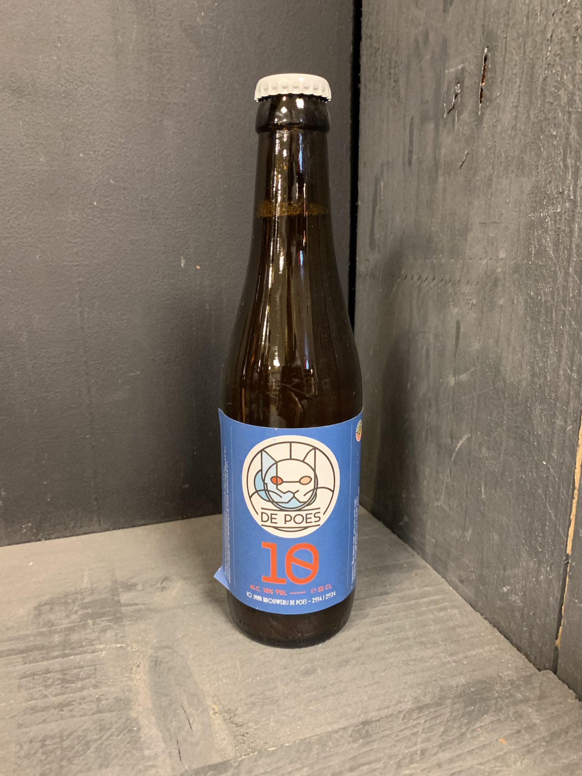 De Poes 10 is het volmondige jubileumbier van brouwerij De Poes. 10 % alcohol voor 10 jaar brouwerij De Poes. Blond ambachtelijk, bovengistend en ongefilterd bier. Hergist op de fles tot de perfectie.