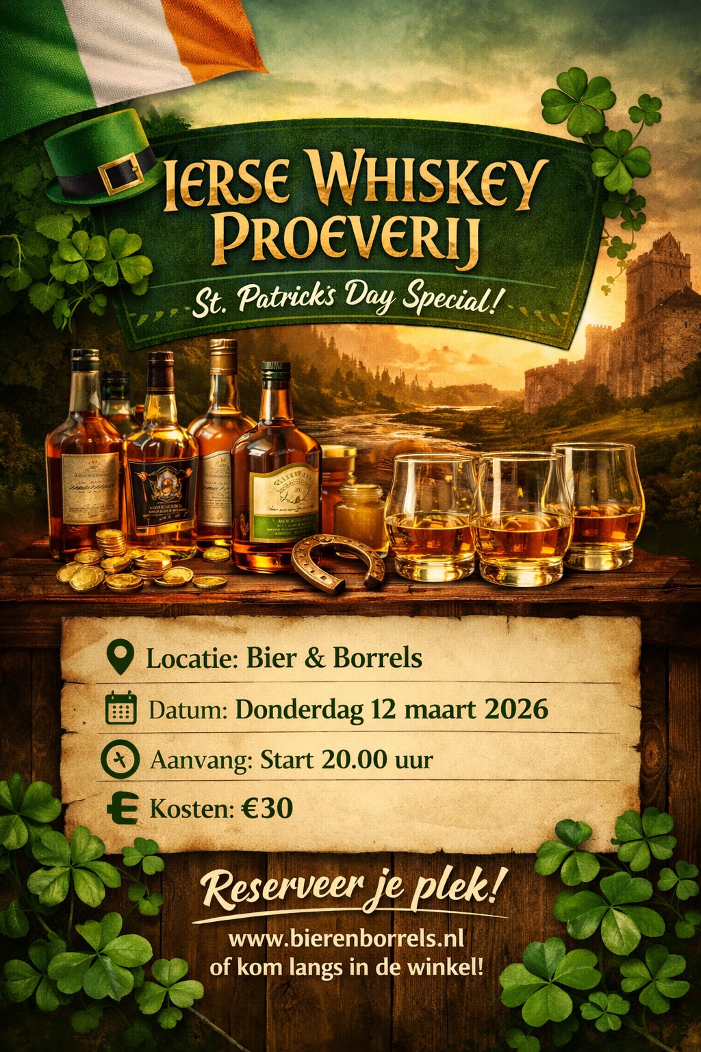 🍀 St. Patrick’s Day Ierse Whiskey Proeverij bij Bier & Borrels 🥃